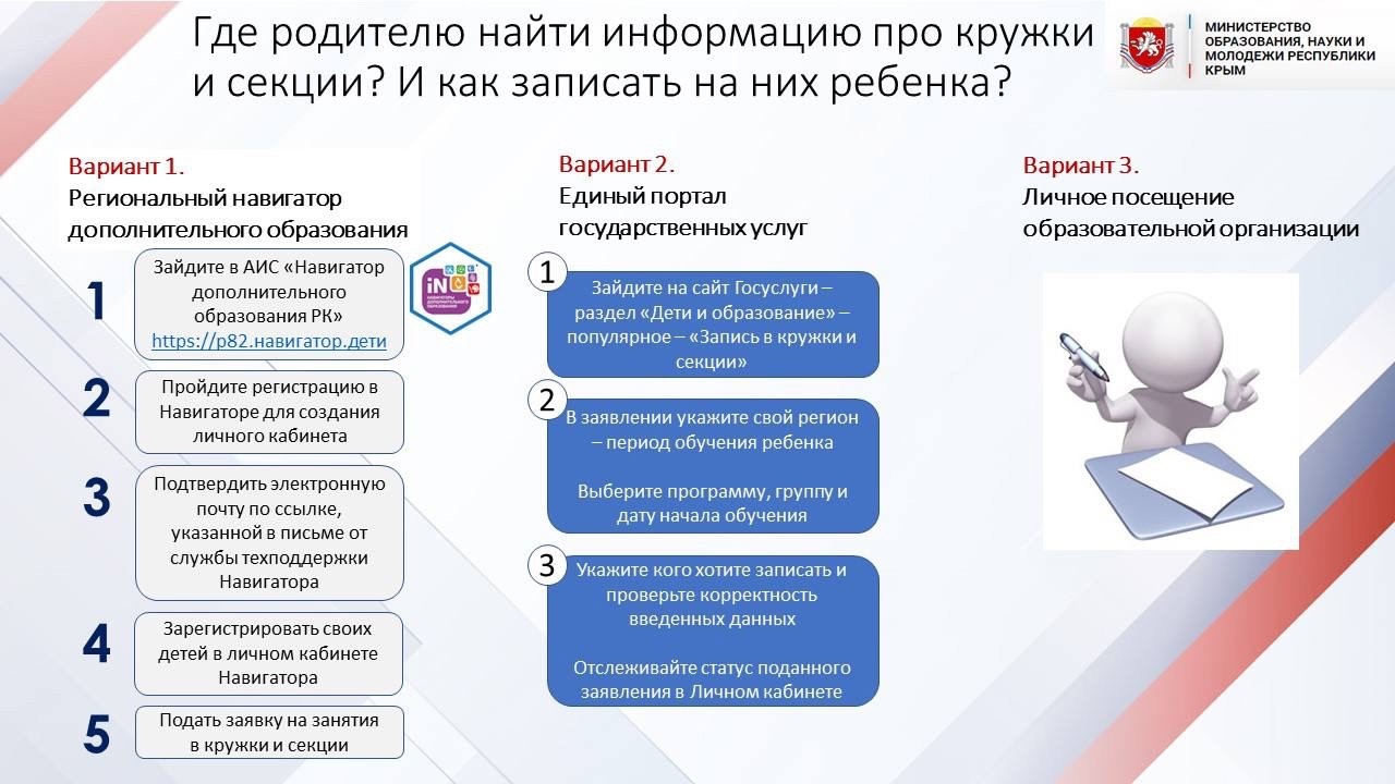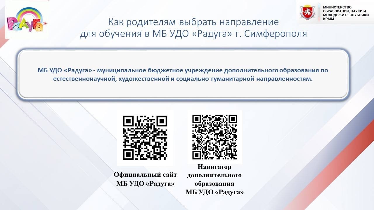 Автоматизированная информационная система "Навигатор дополнительного образования Республики Крым" (далее – Навигатор) – это информационный ресурс, на котором размещена информация о программах дополнительного образования и реализующих их организациях https://р82.навигатор.дети/