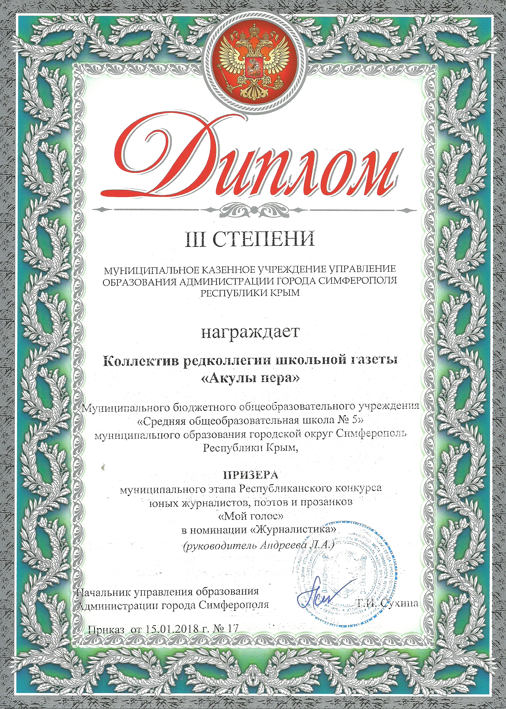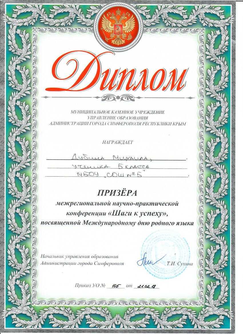 МБОУ «СОШ № 5 им. 85-го АСП» г. Симферополя